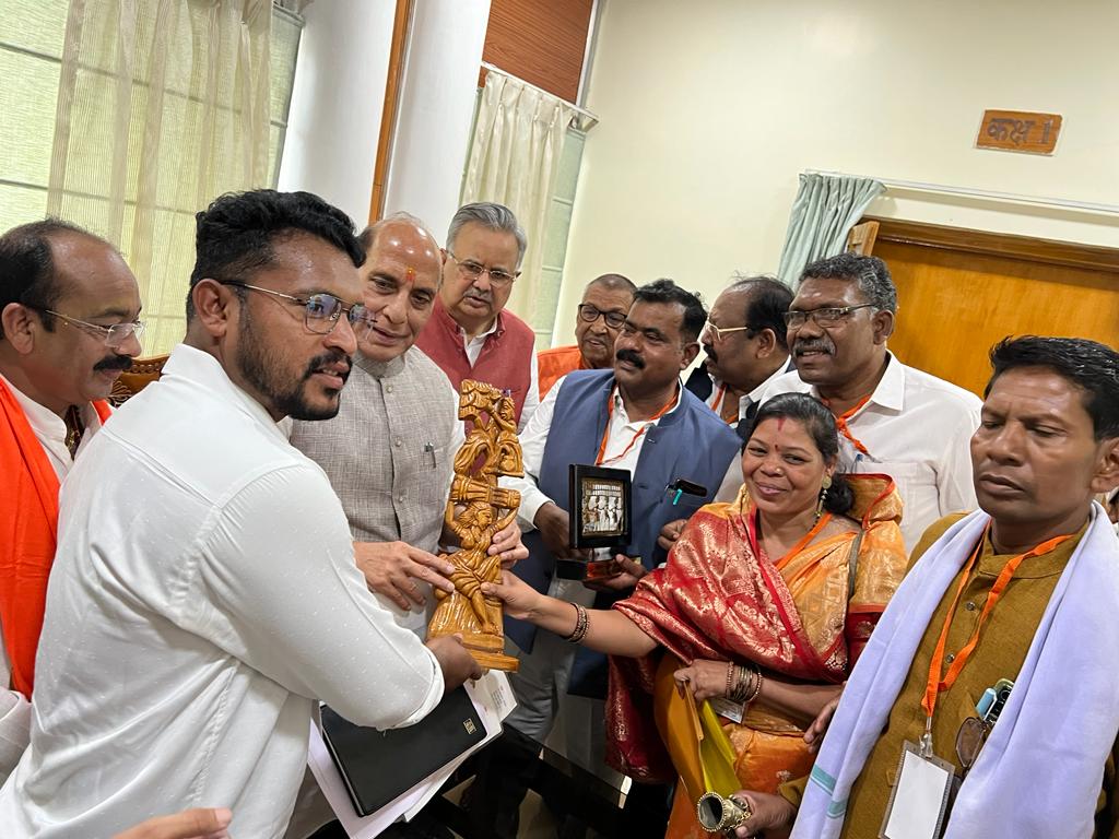 समान नागरिक संहिता को आदिवासी समाज से पृथक रखने की मांग को लेकर केंद्रीय रक्षा मंत्री राजनाथ सिंह से गोंडवाना गोंड महासभा नेसौंपा ज्ञापन
