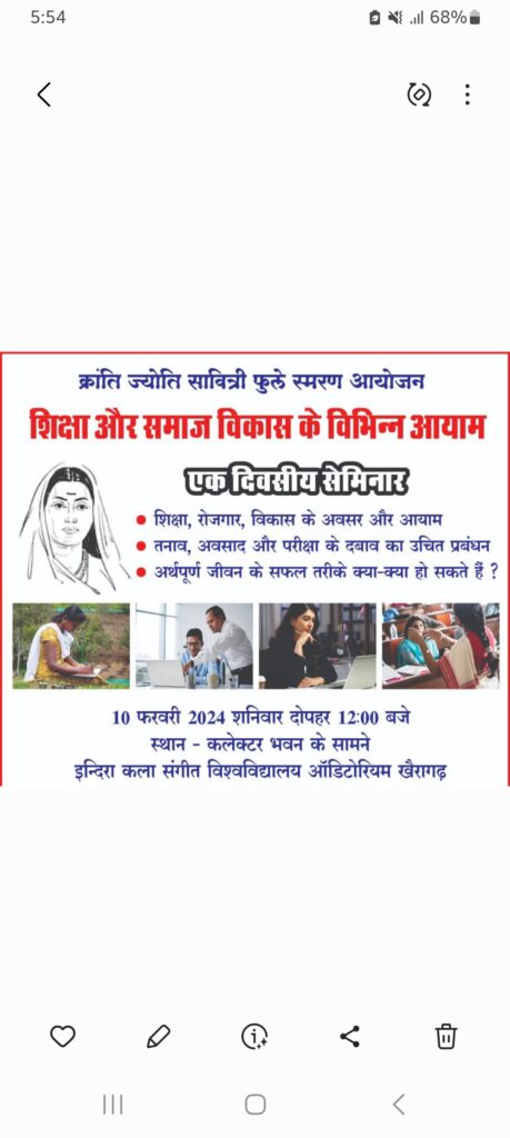 शिक्षा और समाज विकास के विभिन्न आयाम पर एक दिवसीय सेमिनार 10 फरवरी को खैरागढ़ में