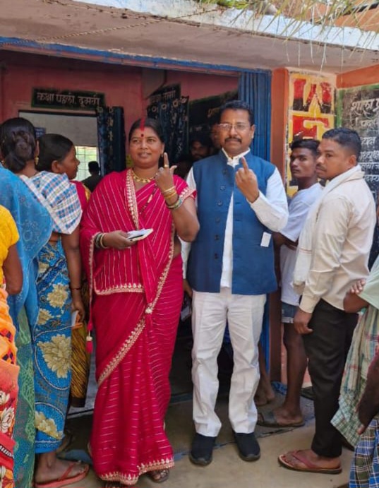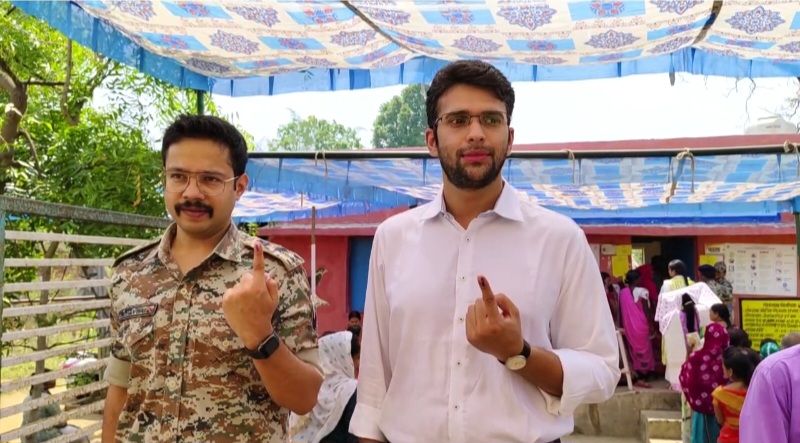 चितालंका के बरसापारा मतदान केंद्र में कलेक्टर एवं पुलिस अधीक्षक ने किया मतदान