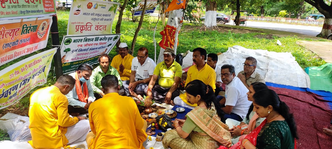आज आध्यात्मिक एवं सेवा फाउंडेशन छत्तीसगढ़ की प्रेरणा से सैल्यूट तिरंगा एवं पर्यावरण मित्र मंडल के संयुक्त तत्वाधान में भिलाई स्ट्रीट सेक्टर 10 ग्लोबल चौक के समीप प्रकृति वंदन का आयोजन किया गया।