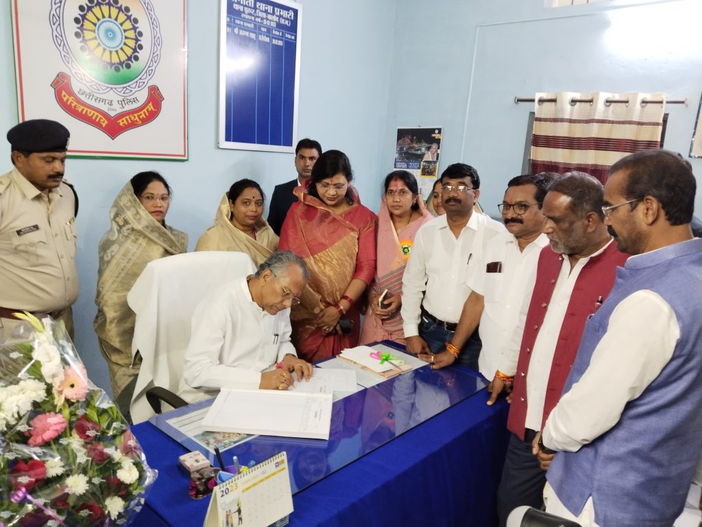 गृह मंत्री ताम्रध्वज साहू रोजनामचा का श्रीगणेश करते हुए।