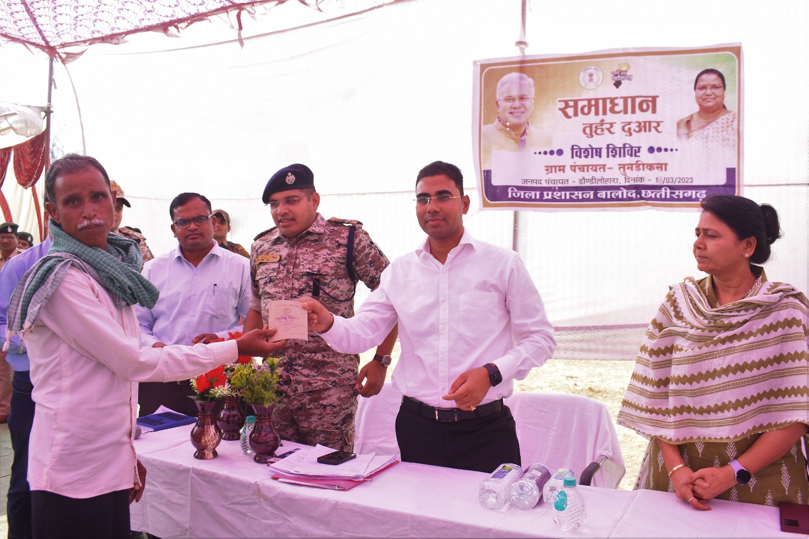 कलेक्टर कुलदीप शर्मा एवं पुलिस अधीक्षक जितेन्द्र कुमार यादव ने आज डौण्डीलोहारा विकासखण्ड के सुदूर वनांचल के ग्राम पंचायत मुख्यालय बंजारी एवं तुएगोंदी में पहुंचकर ’समाधान तुंहर दुआर’ शिविर का अवलोकन किया।