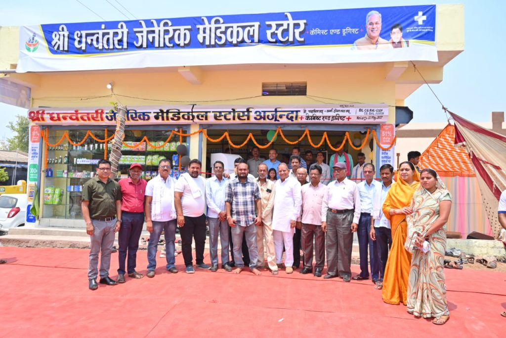 अपने गृह नगर अर्जुन्दा में संसदीय सचिव एवं गुंडरदेही विधायक कुंवर सिंह निषाद के मुख्य आतिथ्य में जनप्रतिनिधियों के द्वारा श्री धन्वंतरी जेनेरिक मेडिकल स्टोर का शुभारंभ किया गया।