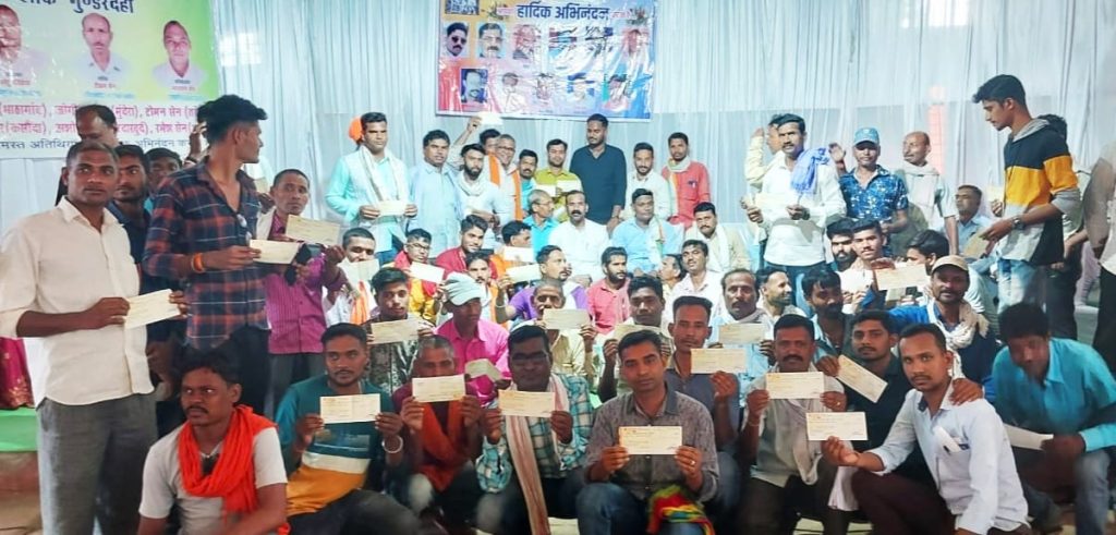 कोरोना काल जैसी आपदा में भयावह स्थिति से गुजरने वाले सेन समाज के 118 परिवार को संसदीय सचिव एवं गुंडरदेही विधायक कुंवर सिंह निषाद ने मंगलवार को गुंडरदेही के सामुदायिक भवन में 5 लाख 90 हजार रुपए का चेक वितरण किया।