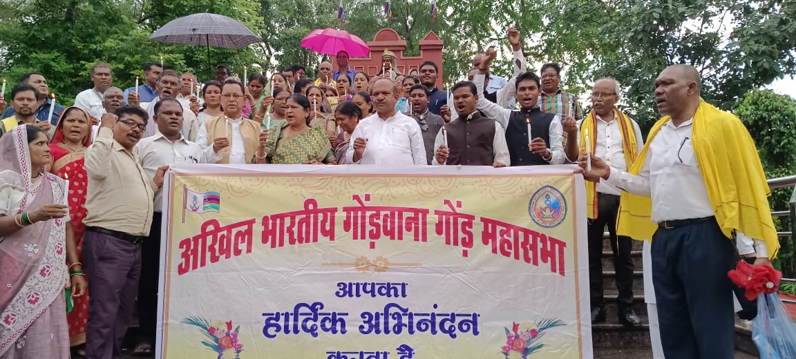 अदम्य शौर्य और साहस की प्रतिमूर्ति अन्याय, अत्याचार के खिलाफ मुगलों से लोहा लेने वाली वीरांगना महारानी दुर्गावती जी के मूर्ति के समक्ष अखिल भारतीय गोंडवाना गोंड महासभा रायपुर द्वारा मणिपुर में राक्षस प्रवृत्ति के लोगो द्वारा बर्बरता पूर्वक महिलाओं के ऊपर किए गए सामूहिक दैहिक शोषण, हत्या, आदिवासियों के खिलाफ हो रहे अमानवीय कृत्य के घोर निंदा करते हुए पीड़ित परिवारों को न्याय दिलाने हेतु कैंडल मार्च कर विरोध प्रदर्शन किया गया। मणिपुर सरकार को तत्काल बर्खास्त किए जाने, मणिपुर सरकार मुर्दाबाद, आदिवासियों पर अन्याय बंद करो, दोषियों को फांसी दो के नारे के साथ भारी आक्रोश प्रदर्शित किया गया।