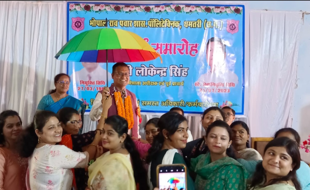 शासकीय भोपाल राव पवार पॉलिटेक्निक रुद्री धमतरी के पूर्व प्राचार्य लोकेंद्र सिंह कोमर्रा के स्वैच्छिक सेवानिवृत्ति लेने पर सम्मान समारोह रखकर विदाई दी गई। इस अवसर पर लोकेंद्र सिंह ने कहा कि इस संस्था ने मुझे बहुत कुछ दिया। उन्होंने कहा कि समाज क्षेत्र की जनता की सेवा हेतु लगभग 10 वर्षों की नौकरी को छोड़कर सेवानिवृत्ति पश्चात राजनीति में प्रत्यक्ष रूप से आएंगे। सक्रिय राजनीति में आने का उद्देश्य किसी लाभ के लिए नहीं है, बल्कि उन गरीब, पिछड़ों की सेवा करना है जो समाज के मूल धारा से दूर हैं। मेरी हार्दिक इच्छा है कि मैं जिस माटी में पैदा हुआ पला– बढ़ा अब वक्त आ गया है उस माटी का कर्ज अदा करूं। जीवन के 31 स्वर्णिम वर्ष इस रुद्री में बिताया हूं। यह मेरी कर्मभूमि है मान , सम्मान इस संस्था, इस धमतरी ने मुझे बहुत कुछ दिया है ,मैं इसका आजीवन कर्जदार रहूंगा। अपनी बातें रखते हुए भाव विभोर हो गए और उनकी आंखों से आंसू छलक गए।