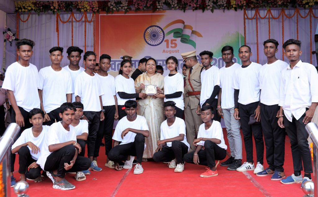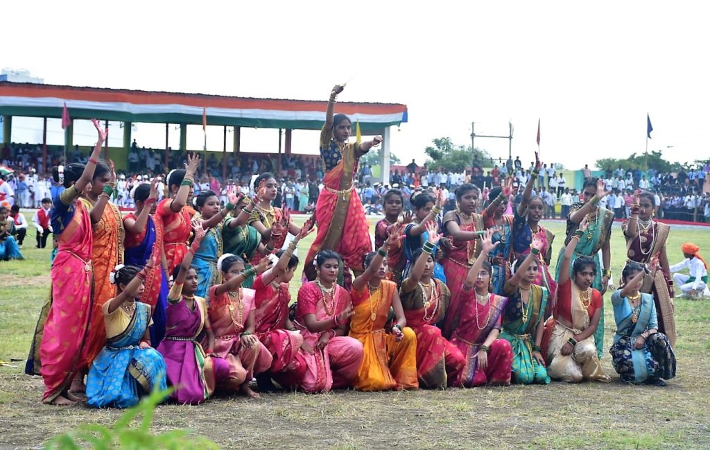 समारोह में स्कूली विद्यार्थियों द्वारा प्रस्तुत किए गए देशभक्ति से ओतप्रोत सांस्कृतिक कार्यक्रमों के अंतर्गत नयनाभिराम एवं उत्कृष्ट प्रस्तुति के लिए