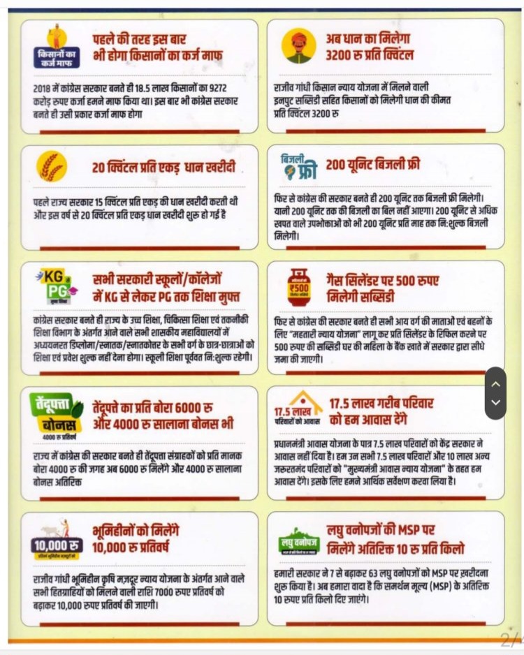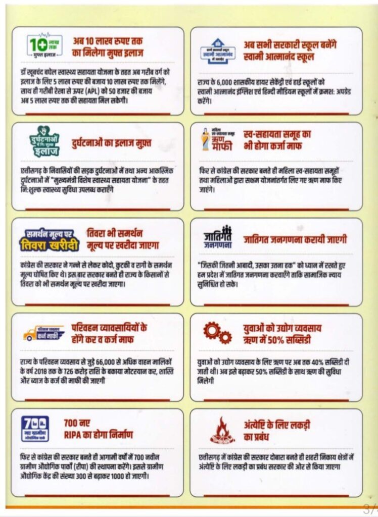 छत्तीसगढ़ में कांग्रेस ने आज अपना घोषणा पत्र जारी कर दिया। इसमें समाज के सभी वर्गों के लिए पहले से ज्यादा का वादा है। प्रदेश के 7 जिलों से कांग्रेस ने घोषणा पत्र (Manifesto CG Congress) जारी किया।