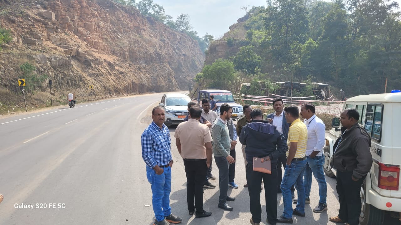 मरकाटोला घाटी के पास घटित सड़क दुर्घटना के मद्देनजर संयुक्त टीम (एनएचआई/पुलिस/परिवहन) द्वारा घटनास्थल का किया गया निरीक्षण