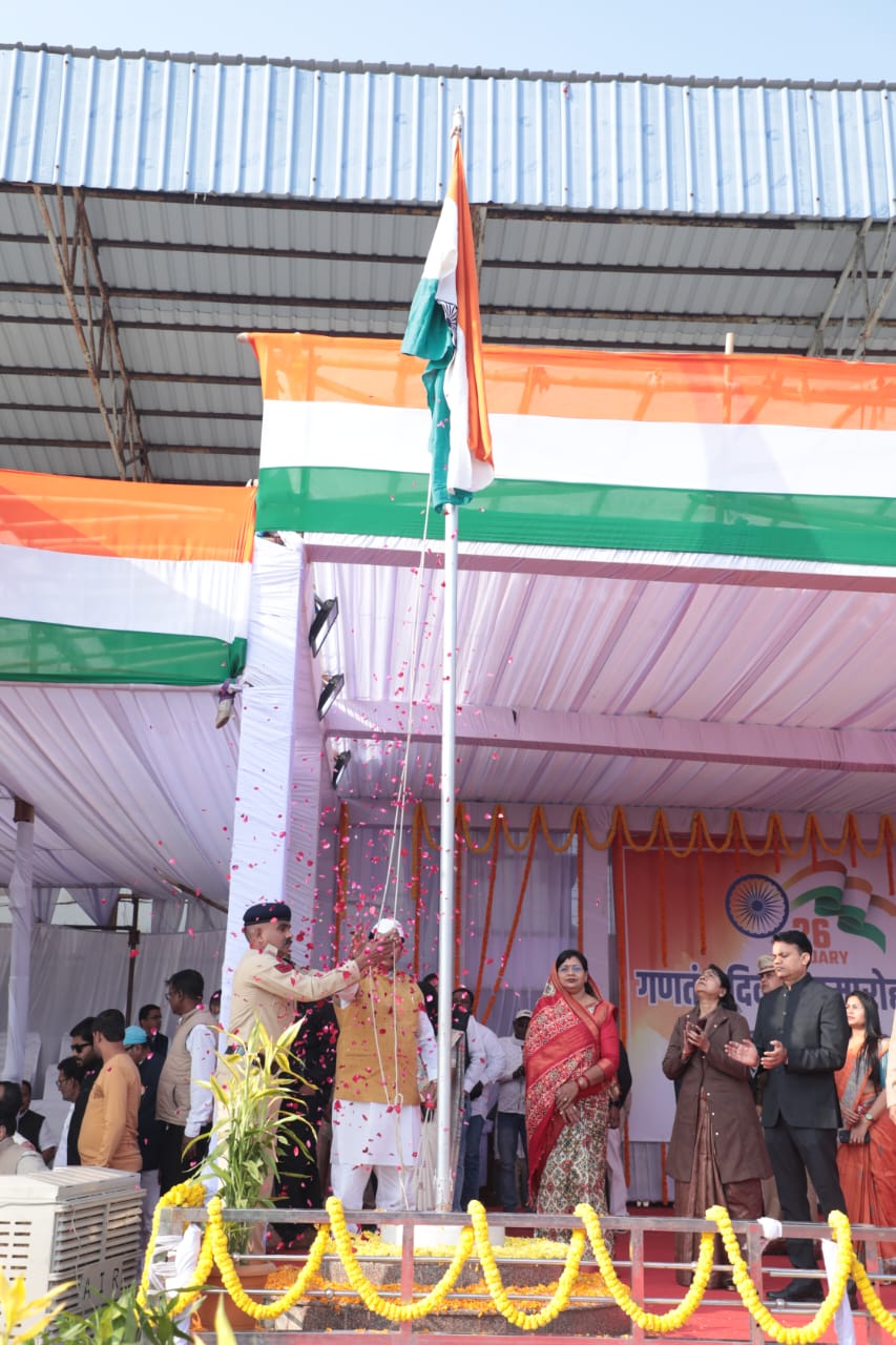 जिला मुख्यालय बालोद में आज राष्ट्रीय पर्व गणतंत्र दिवस समारोह हर्ष उल्लास तथा भव्य एवं गरिमामय ढंग से मनाया गया। समारोह के मुख्य अतिथि दुर्ग लोकसभा क्षेत्र के सांसद विजय बघेल ने प्रातः 09 बजे स्व.सरयू प्रसाद अग्रवाल स्टेडियम में राष्ट्रीय ध्वज फहराकर परेड की सलामी ली। इस अवसर पर उन्होंने मुख्यमंत्री विष्णुदेव साय का गणतंत्र दिवस संदेश का वाचन भी किया। इस दौरान मुख्य अतिथि विजय बघेल ने शांति के प्रतीक श्वेत कपोत और हर्षोल्लास के प्रतीक रंगबिरंगे गुब्बारे भी आसमान में छोड़े। इस अवसर पर संजारी-बालोद विधायक संगीता सिन्हा, जिला पंचायत अध्यक्ष सोनादेवी देशलहरा, जिला पंचायत उपाध्यक्ष मिथलेश निरोटी, नगर पालिका अध्यक्ष विकास चोपड़ा, पूर्व विधायक प्रीतम साहू एवं पूर्व नगर पालिका अध्यक्ष राकेश यादव एवं यज्ञदत्त शर्मा, केसी पवार सहित कलेक्टर इन्द्रजीत सिंह चन्द्रवाल, पुलिस अधीक्षक जितेन्द्र कुमार यादव, सेनानी 14वीं वाहिनी छत्तीसगढ़ सशस्त्र बल डी.आर.आचला, वनमंडल अधिकारी आयुष जैन, जिला पंचायत की मुख्य कार्यपालन अधिकारी डाॅ. रेणुका श्रीवास्तव, अपर कलेक्टर चन्द्रकांत कौशिक, शशांक पाण्डेय तथा अतिरिक्त पुलिस अधीक्षक सुशील नायक के अलावा विभिन्न विभागों के अधिकारी, कर्मचारी और बड़ी संख्या में गणमान्य नागरिक उपस्थित थे।