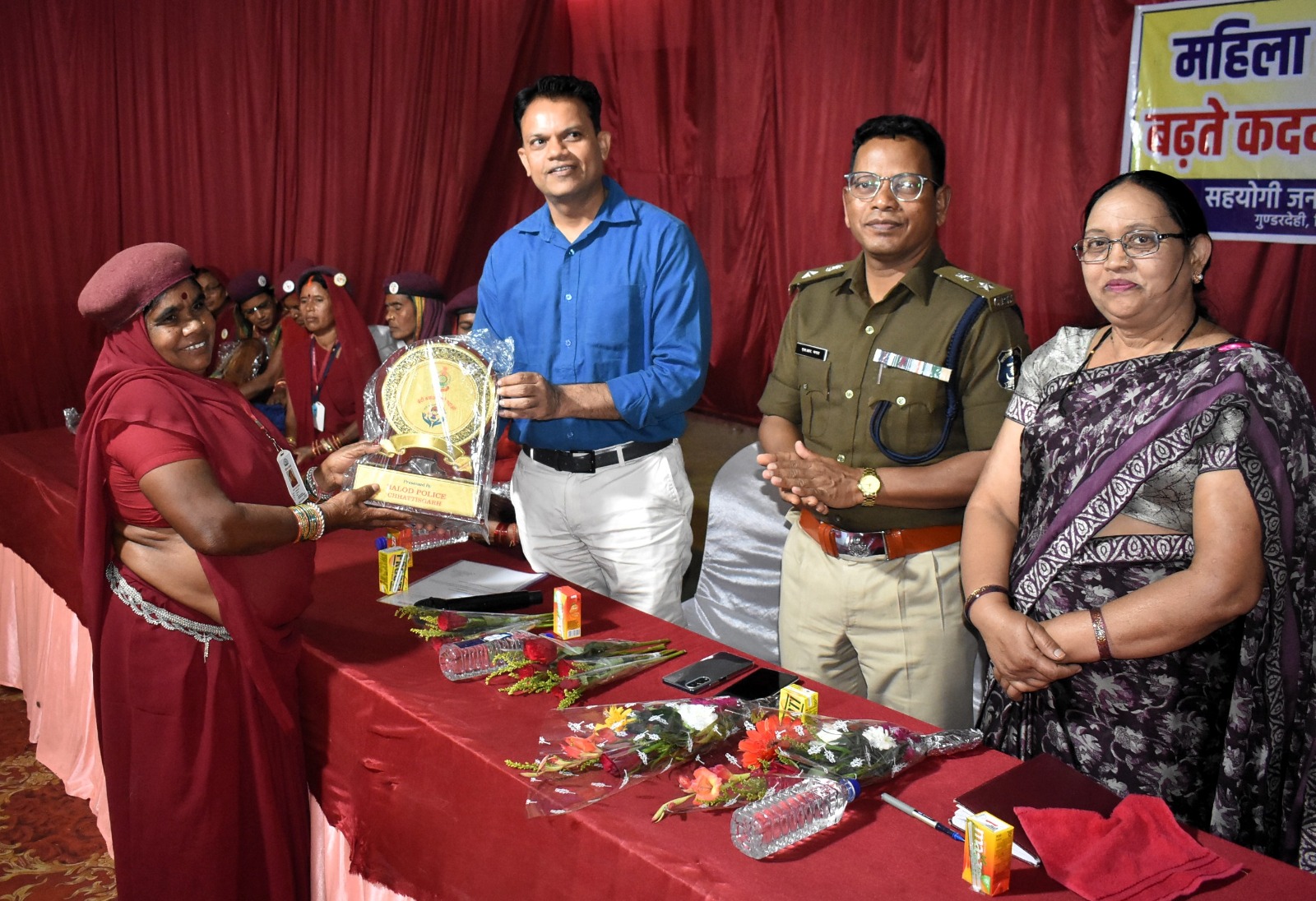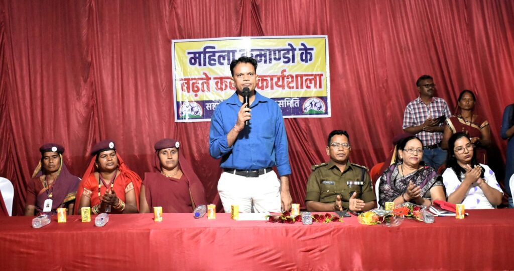 इस अवसर पर अतिथियों के द्वारा महिला कमाण्डो की 100 टीम को टार्च, सीटी, लाठी एवं 10 गांव की महिला कमाण्डों टीम को प्रतीक चिन्ह भेंट कर सम्मानित किया गया।