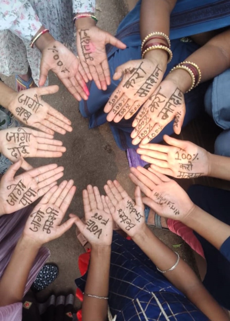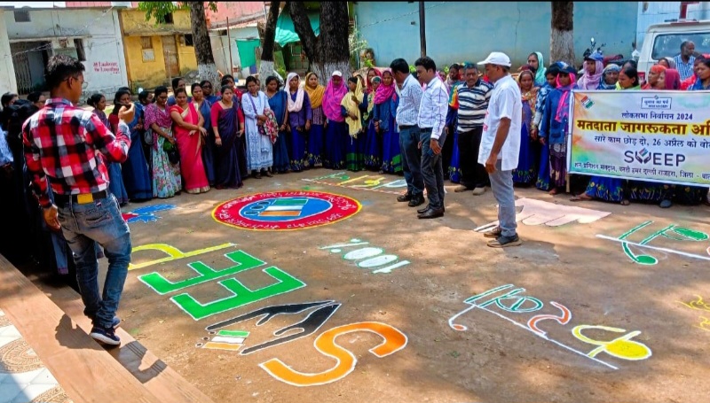 इस अवसर पर आंगनबाड़ी कार्यकर्ताओं, नगर पालिका के अधिकारी-कर्मचारियों ने आकर्षक एवं रंग-बिरंगे रंगोली बनाकर तथा अपने हाथों में मेंहदी लगाकर मतदाता एवं आम नागरिकों को मतदाता जागरूकता का संदेश दिया।