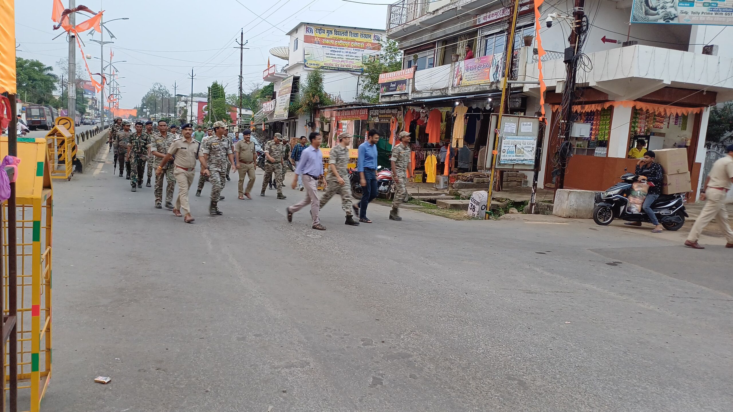 पुलिस और जिला प्रशासन द्वारा निकाला गया फ्लैग मार्च कलेक्टर व जिला निर्वाचन अधिकारी मयंक चतुर्वेदी , पुलिस अधीक्षक गौरव राय सहित पुलिस और प्रशासन के वरिष्ठ अधिकारी रहे मौजूद