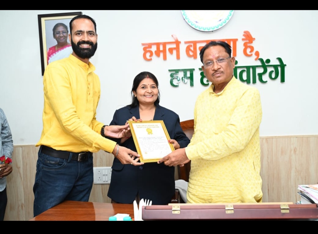 मुख्यमंत्री से सर्टिफिकेट व मैडल प्राप्त के अवसर मुख्यमंत्री निवास में उनके मित्र तोमन साहू, दिनेश तापड़िया, चेतन पटेल, नीरज शर्मा, आशीष राठी उपस्थित रहे, सभी ने उन्हें बधाईयां दी।