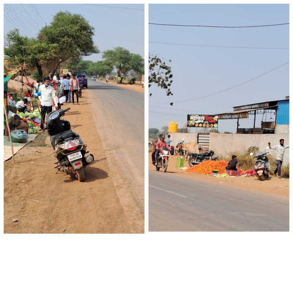 डामरीकरण से पांच फीट दूरी पर नगर प्रशासन द्वारा खंभे लगाए गए हैं उसके उस पार ही पसरा लगाया जाना है लेकिन इस चित्र में देख सकते हैं पसरा कहां लगाया गया है और खरीदने वालों की दो पहिया चार पहिया वाहन पूरी सड़क पर होता है और इस बीच भारी वाहनों का आना जाना जारी रहता है। ऐसे में कभी भी दुर्घटनाएं हो सकती हैं।