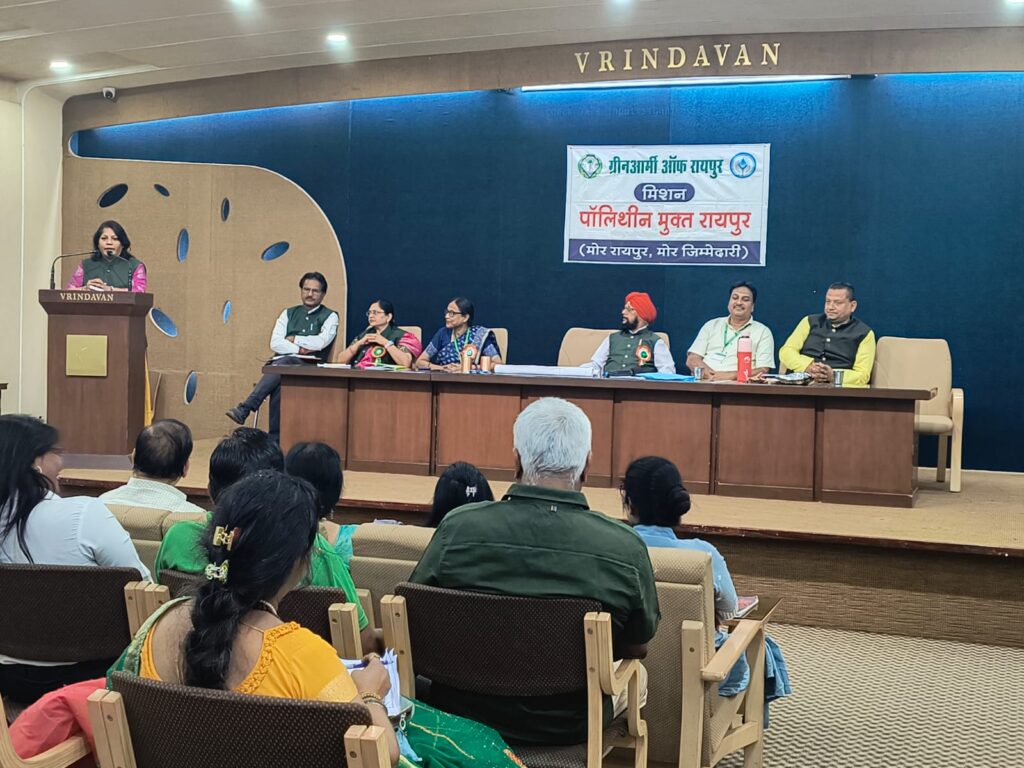 ग्रीन आर्मी संस्था द्वारा वृंदावन हाल सिविल लाइन रायपुर में प्लास्टिक समस्या एवं समाधान पर एक बैठक का आयोजन किया गया।