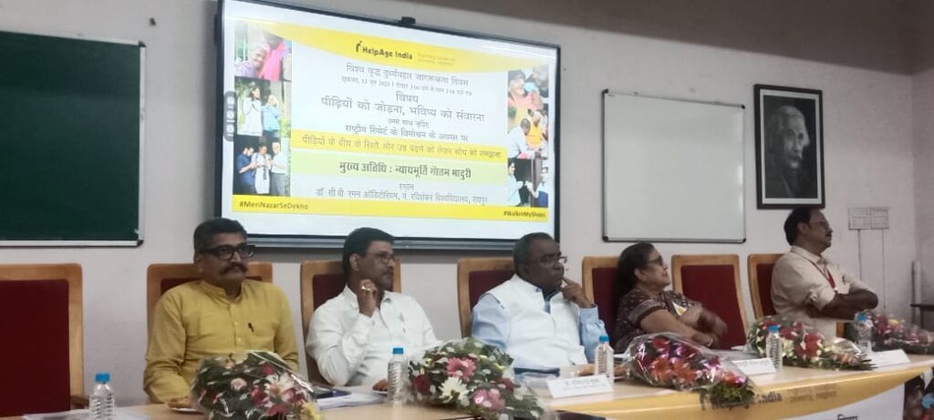 गत दिवस रविशंकर विश्वविद्यालय रायपुर के सी वी रमन ऑडिटोरियम में विश्व वरिष्ठ दुर्व्यवहार जागरूकता दिवस पर एक दिवसीय वैचारिक संगोष्ठी का आयोजन किया गया . विषय था *पीढ़ियोंको जोड़ना भविष्य को संवारना .