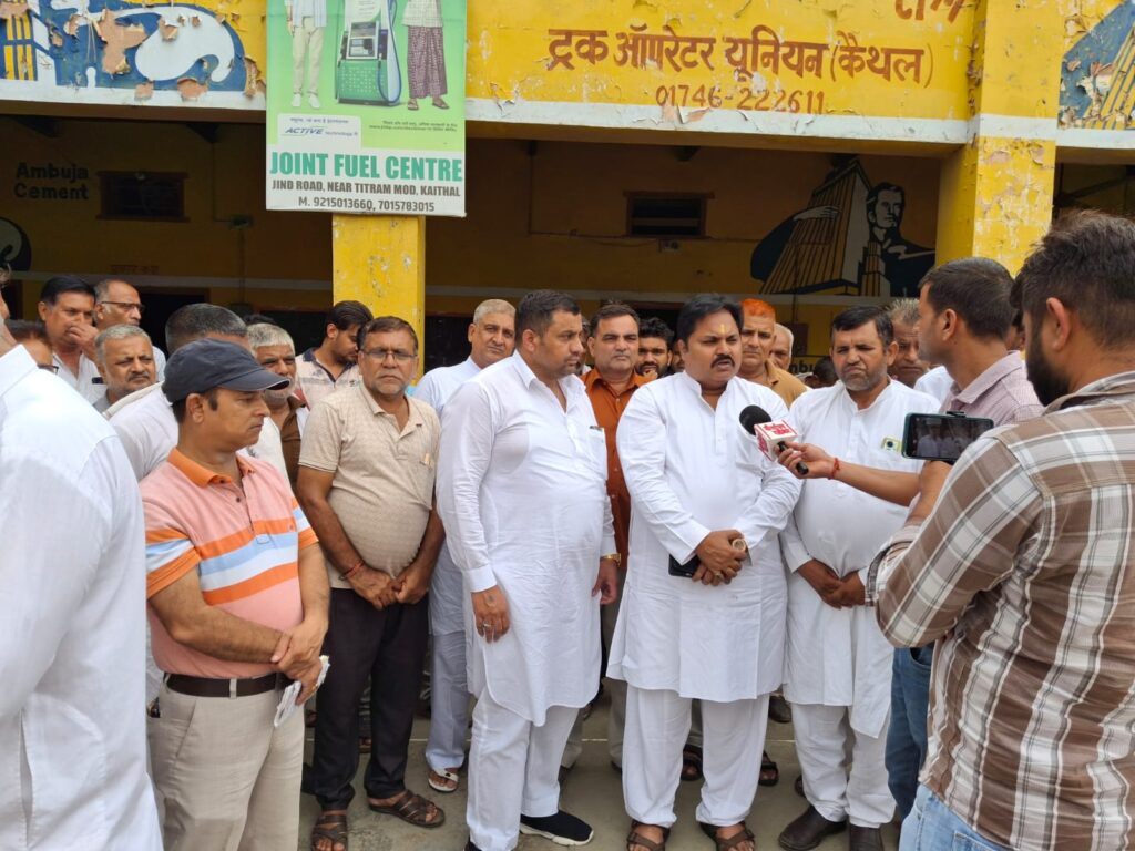 कैथल ट्रक आपरेटर यूनियन परिसर में राष्ट्रीय संयुक्त मोर्चा “ट्रक ट्रांसपोर्ट सारथी” उफ्तत्सा के राष्ट्रीय अध्यक्ष डॉ राजकुमार यादव ने विभिन्न विषयों पर बातचीत के पश्चात ट्रैक्टर ट्रॉली से व्यावसायिक माल परिवहन को तत्काल प्रभाव से बंद करने की बात की ,लेन चालान,ओवर हाइट की बेवजह पेनल्टी, लोकेशन बंद करने की बात की व मुख्यमंत्री से इन सभी तथ्यों पर ध्यान देने की अपील की वह प्रदेश में आरटीओ व पुलिस विभाग की मनमानी बंद नहीं करने पर राज्यव्यापी आंदोलन की बात की।
