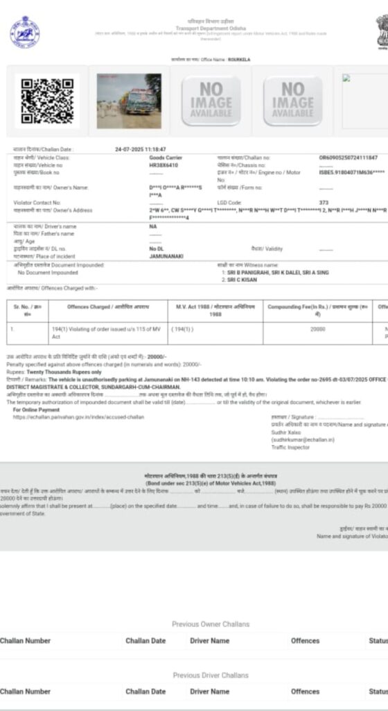 O गलत चालान का अंबार – खराब कैमरा, GPS और तकनीकी त्रुटियों के कारण निर्दोष चालकों पर हजारों रुपये के चालान थोपे जा रहे हैं।जो गलत होते हुए गाड़ी मालिकों पर सीधे थोपे जा रहे हैं वह गाड़ी मालिक रोते बिलखते ही सही इसे जमा करने को मजबूर हैं l भारी जुर्माना, छोटा अपराध – सीट बेल्ट, ओवरलोडिंग, नो पार्किंग या मामूली तकनीकी त्रुटि पर भी ₹5,000 से ₹25,000 तक चालान, जिससे छोटे ट्रक मालिक कर्ज में डूब रहे हैं। सरकार को इंफ्रास्ट्रक्चर के तहत अच्छी सड़के व पार्किंग की व्यवस्था देनी है किंतु अपनी कमियों को छुपाने का काम करते हुए छोटे गाड़ी मालिकों पर नो पार्किंग व अन्य धारा के तहत हजारों रुपए के फाइन थोक जा रहे हैं ल