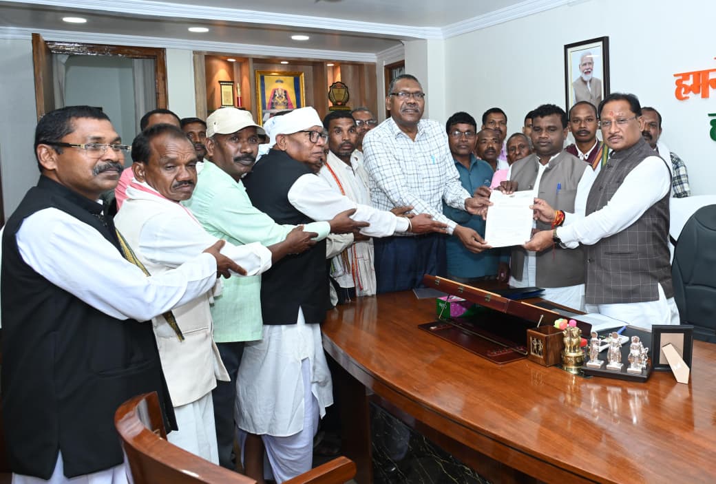 अनुसूचित जनजाति शासकीय सेवक विकास संघ छत्तीसगढ़ के प्रांताध्यक्ष आर एन ध्रुव द्वारा विष्णु देव साय मुख्यमंत्री छत्तीसगढ़ शासन से मुख्यमंत्री निवास रायपुर में भेंट कर निवेदन है कि दिनांक 05/05/2025 को आयोजित पुनरीक्षण डी.पी.सी. की कार्यवाही को निरस्त करते हुए पात्र आदिवासी समाज के अधिकारी को न्याय दिलाए जाए।