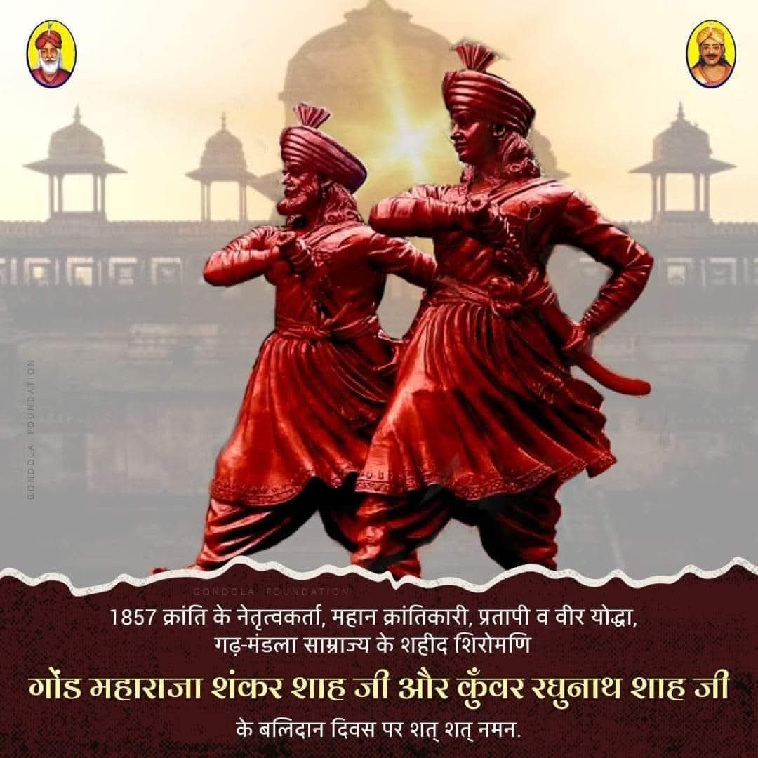आदिवासी ध्रुव गोंड समाज मुँगलाटोला, साजा जिला बेमेतरा में गोंडवाना के गौरव ,महान क्रांतिकारी, शौर्य पराक्रम से भरपूर, वीर गरीबों के मसीहा ,अंग्रेजी शासन के विरुद्ध आवाज बुलंद करने वाले 1857 के स्वतंत्रता संग्राम सेनानी महान देश प्रेमी अमर शहीद राजा शंकर शाह मंडावी एवं कुंवर रघुनाथ मंडावी की 168 वीं बलिदान दिवस 25 सितंबर को मनाया जाएगा।