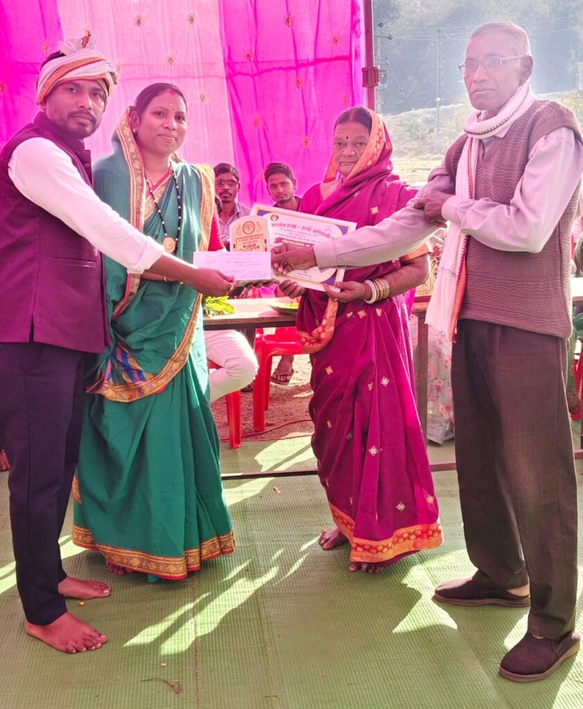 साथ ही कार्यक्रम में गणमान्य नागरिकों, समाज के बुजुर्गों तथा माताओं-बहनों को श्रीफल एवं गमछा भेंट कर सम्मानित किया गया।