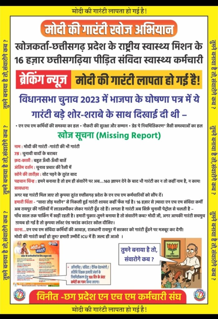 अनिश्चितकालीन आंदोलन NHM कर्मचारी” मोदी की गारंटी” खोजने जायेंगे तूता